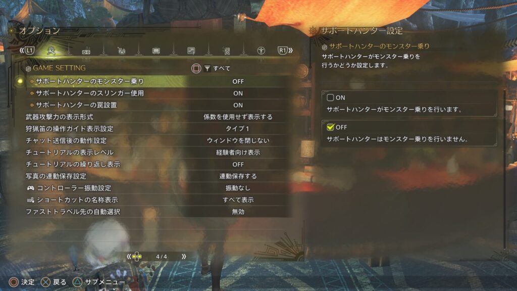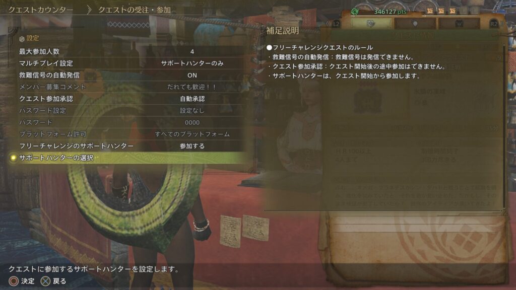 画像の設定にすると、クエスト開始時に自動でサポハンが合流してくれます