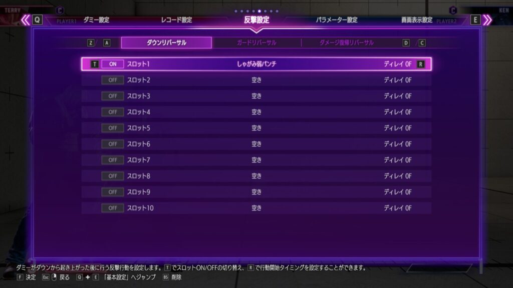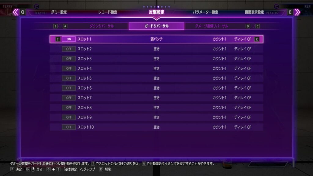 「反撃設定→ガードリバーサルに弱Pをセット」(弱Pの発生が4Fのキャラ)