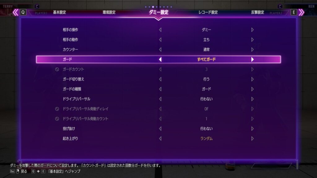 トレモメニューの「ダミー設定でガードを”すべてガード”に設定」