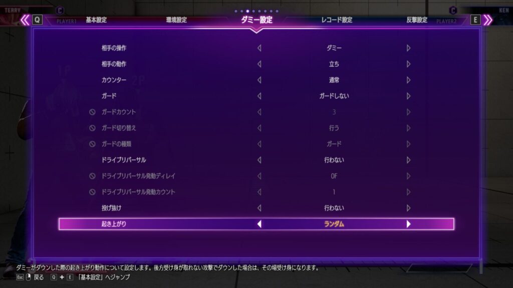 ①と②は遅らせグラップで両対応されてしまうので、①を投げ抜けされるようなら様子見の屈ガードを混ぜる。