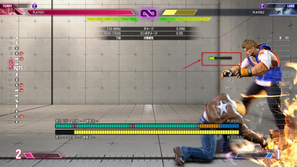 ディレイのタイミングはフレームメーターの赤の6F目から