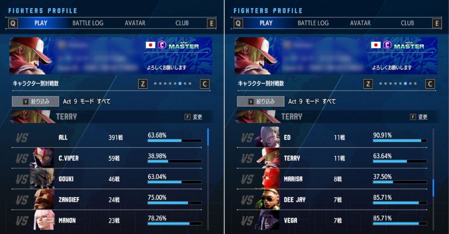 スト6でテリー(クラシック)を使用し、このたびマスターに到達することができました。
