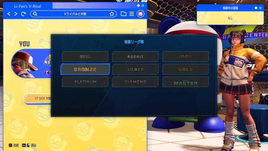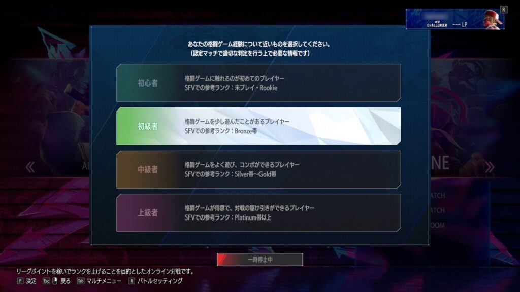 認定戦で当たったブロンズの相手は、キャラを動かすのもままならない…といった感じで、明らかに格ゲーに慣れてなさそうな動きをしてました。