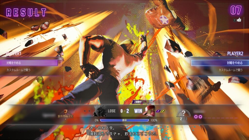 遊びながら格ゲーの基礎やスト6のシステム等を学べるようにもなっているので、格ゲー初心者で何をして良いのか分からなかったら、ワールドツアーでとりあえずゲームに慣れるのが良いと思います(特にモダン使用者)。