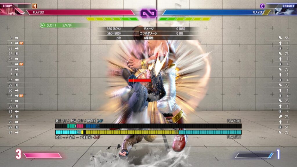 起き攻めに関しては、重ねが甘くなっているとそもそも択として成立しなくなるので、トレモのフレームメーターを見ながらしっかり重ねられているか確認します(最速で前ステや打撃ができてるか?など)。